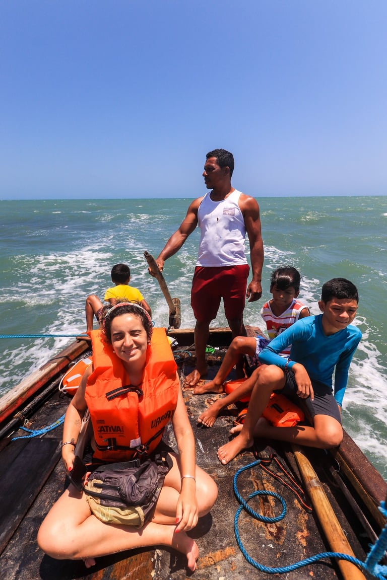 Nossas vivências sazonais acompanham o tempo do lugar e os saberes da comunidade. Em diferentes épocas do ano, convidamos você a viver momentos como o passeio de jangada, visita à casa de farinha, oficinas de extração de óleo de coco e outras práticas tradicionais que revelam o cotidiano local. São experiências simples, vividas com presença, que conectam às histórias, aos ritmos e às mãos de quem vive aqui.